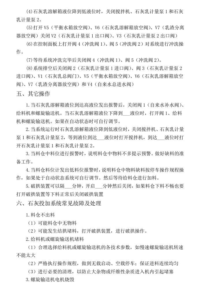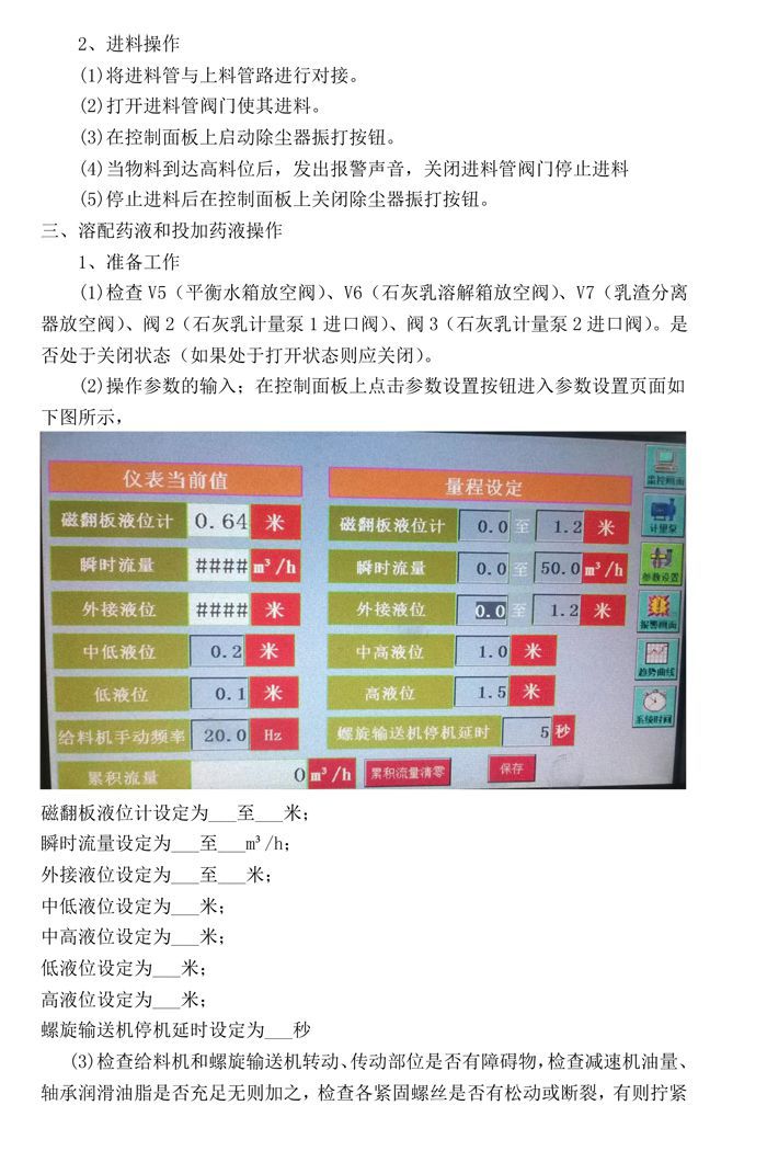 石灰投加系统操作规程